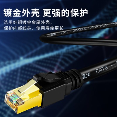 晶华(JH)八类万兆网线 8芯双绞线高速纯铜跳线 黑色20米 W200N
