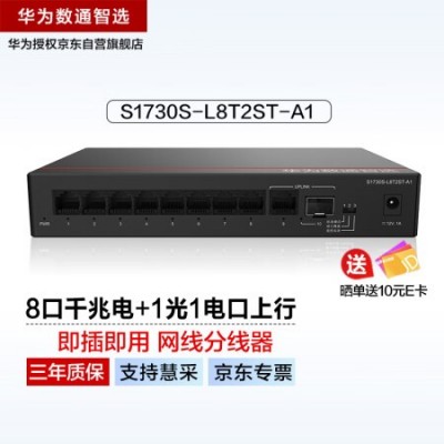 华为数通智选5口8口10口千兆交换机S1730S-L8T2ST-A1 8口千兆电+1上行电口+1上行光口企业级分线器集线分流器