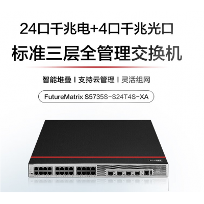 华为数通智选交换机S5735S-S24T4S-XA 24口千兆电+4口千兆光口标准三层可堆叠中小企业替代S5735S-S24T4S-A