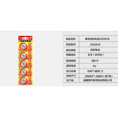 南孚(NANFU)CR2016 纽扣电池 3V 5个卡