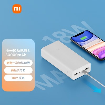 小米移动电源3 原装30000毫安时 18W快充版白色 充电宝 内含数据线 支持小米苹果安卓手机平板电脑