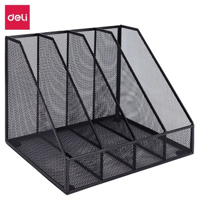 得力(deli)四联金属桌面文件框书立 办公室桌面多层资料架子网状镂空文件架/文件栏 黑色78986