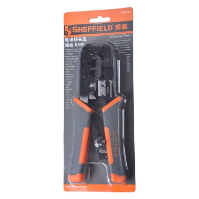 钢盾 SHEFFIELD S035019 电讯接头压接钳 水晶头压线钳 网线钳 网络接线钳 剥线剪线钳 电讯接头压接钳6/8P