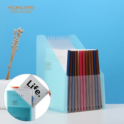 国誉(KOKUYO)A4可立式风琴包淡彩曲奇学生办公多层文件夹12层13袋 竖款蓝色 WSG-DFCS135B