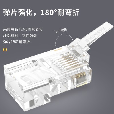 山泽(SAMZHE) DJ-650AU 六类镀金水晶头 RJ45 50U100个/盒