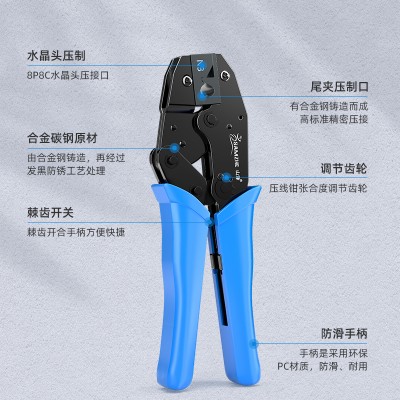 山泽(SAMZHE)七类网线钳 RJ45水晶头钳子燕尾夹多功能专业网络接头工具压接钳 SZ-718