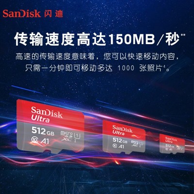 闪迪(SanDisk)512GB TF(MicroSD)内存卡 U1 C10 A1 至尊高速移动版 读速150MB/s 手机平板游戏机存储卡