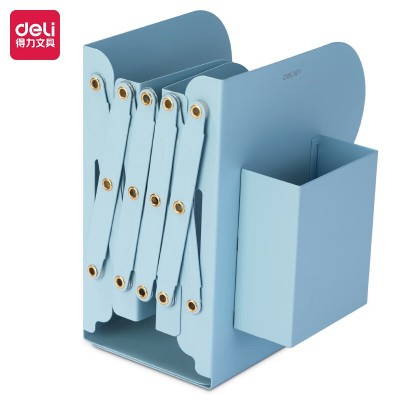 得力(deli)22cm伸缩书立 附磁吸笔筒 简易收纳单联可控 蓝色 TB503