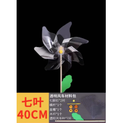DIY手工系列绘画风车 中号涂鸦透明风车透明7叶40cm