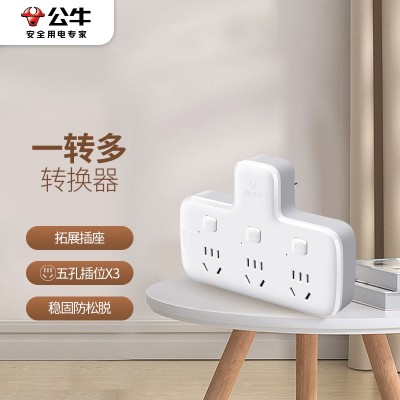 公牛(BULL)转换插头/品字形一转三插座/无线转换插座/电源转换器 适用卧室、厨房 3位分控插座 GN-96033