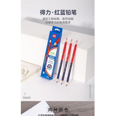 得力(deli)12支红蓝铅笔 双头设计绘图工业工程木工标记彩色铅笔 58899 (12支装/盒)