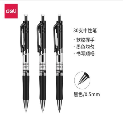 得力(deli)30支S01按动中性笔签字笔 0.5mm子弹头33489 办公用品