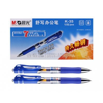 首页 > 办公用品 > > (M&G)K35 0.5mm蓝色中性笔 经典按动子弹头签字笔 办公水笔 12支/盒