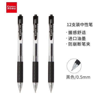 首页 > 办公用品 > 文具 > 齐心(Comix)12支装0.5mm黑色办公按动中性笔水笔签字笔 办公文具 K36
