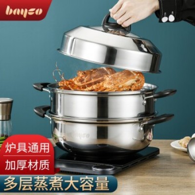 首页 > 用具 > 其他厨房用具 > 拜格(BAYCO)蒸锅家用不锈钢双层汤锅多用锅电磁炉燃气灶通用锅30CM BG1594
