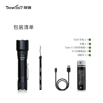 TANK 007 探客 户外调焦直充强光手电筒 KZ01+电池+充电线