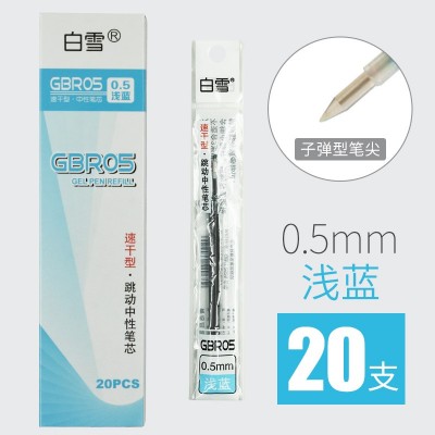白雪GBR05按动笔芯0.5mm红蓝绿橙紫黑色水笔芯替芯子弹头替换学生按压笔芯 浅蓝20支+送笔1支