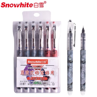 白雪(snowhite)直液式考试走珠笔 速干彩色笔中性笔学生用笔全针管签字笔P1500 6支吊袋 4黑2红墨水