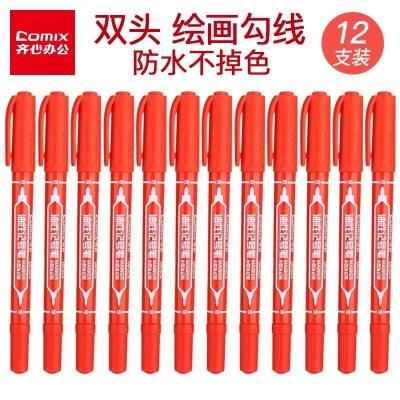 齐心(Comix) MK826 小双头油性记号笔 0.5-1.5mm 12支盒 红色(12支装)