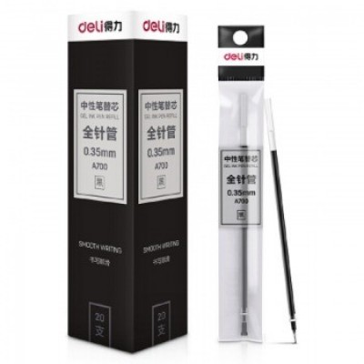得力(deli)A700 全针管中性笔芯替芯0.35mm黑色替芯
