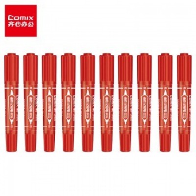 齐心(Comix)MK803 大双头记号笔 10支/盒 红色