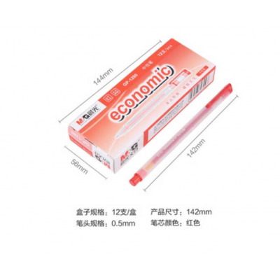 晨光(M&G)物美0.5mm插拔全针管中性笔水笔签字笔 GP1280 红色 12支