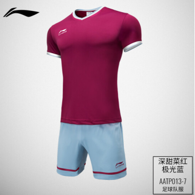 李宁AATP013-7 足球比赛球服套装 成人深甜菜红+极光蓝(码数备注)