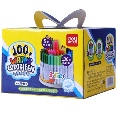 得力(deli)70661 可水洗100色水彩笔 108支桶装