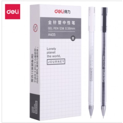 得力(deli) a405方寸格0.38mm中性笔 全针管 水笔签字笔 12支黑