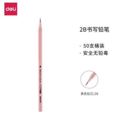 得力(deli)木世界系列六角笔杆原木2B铅笔 50支/桶S907