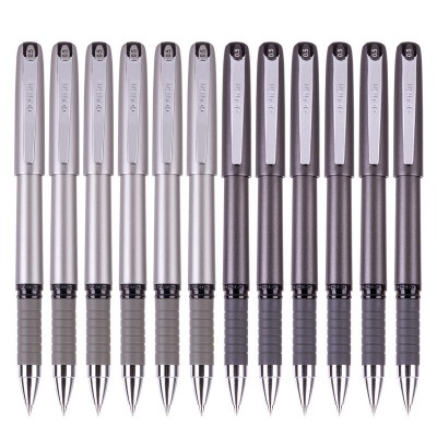 得力(deli)0.5mm黑色中性笔水笔签字笔 金属质感软胶握手12支_盒