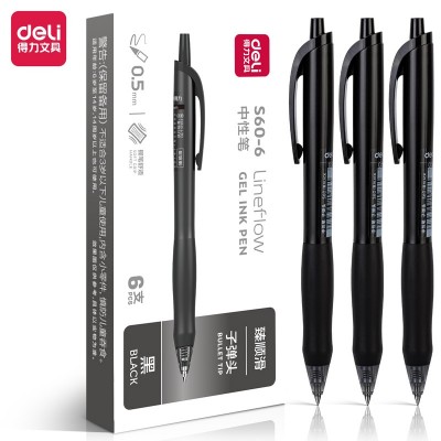 得力S60-6臻顺滑办公中性笔0.5mm子弹头(黑)(盒)