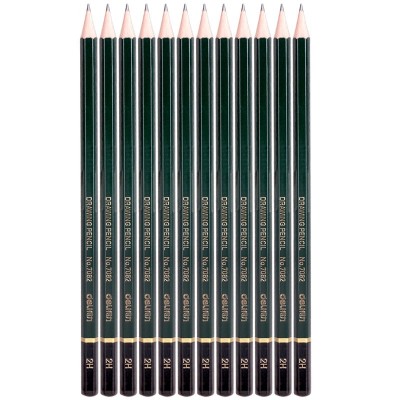 得力(deli)安全石墨铅芯素描绘图2H木质铅笔 12支_盒7082