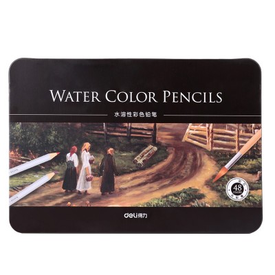 得力(deli)彩色铅笔彩盒水溶性彩色铅笔水溶性彩铅套装 6523铁盒48色