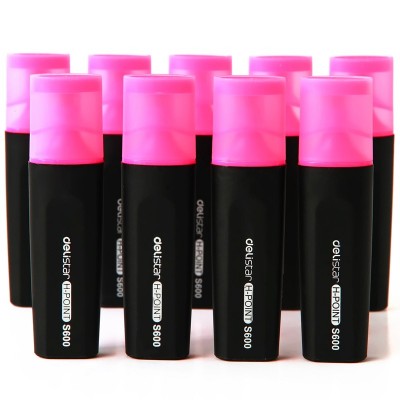 得力(deli)粉色荧光笔重点醒目标记笔 手帐可用水性记号笔10支_盒