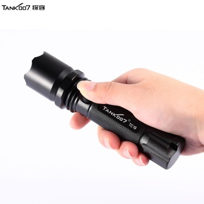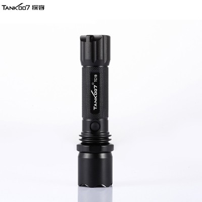 探客(TANK007)警用标准型直充手电筒CREEXPG2R5300流明射程260米三档,高-低-闪手电筒照明灯TC19