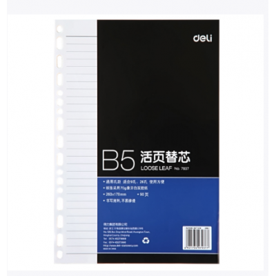 得力(deli)7937 活页本册替芯260*178mm B5/90页 适合9孔26孔