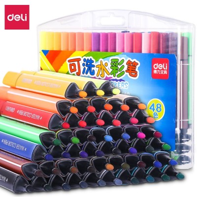得力(deli)70660 可水洗48色水彩笔粗三角杆绘画笔 48支盒