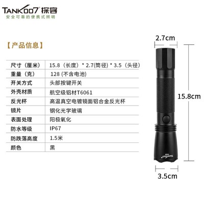 TANK007 探客 LED强光手电筒 射程300米 三档调光 强光防水巡检手电筒 铝合金材质 TX59