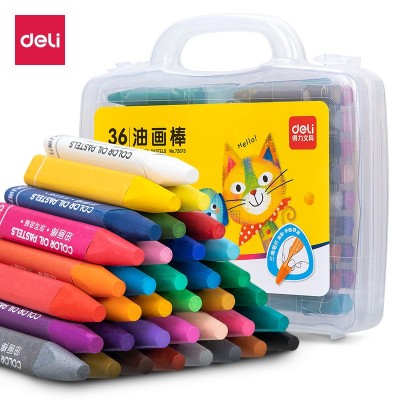 得力(deli)36色三角杆丝滑油画棒 蜡笔绘画笔(内赠5张填色卡)72073