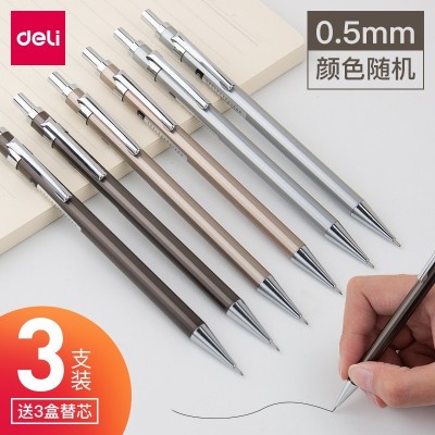 得力(deli)自动铅笔 写不断0.5可爱全金属0.7 不断铅低重心铅笔 金属光杆0.5mm-3支装S331