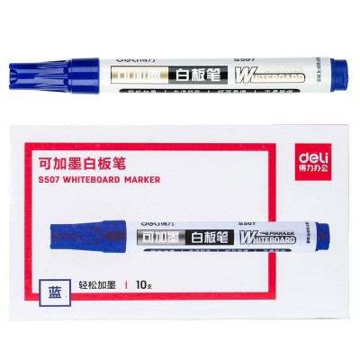 得力(deli)S507可加墨白板笔 可擦易擦 10支蓝