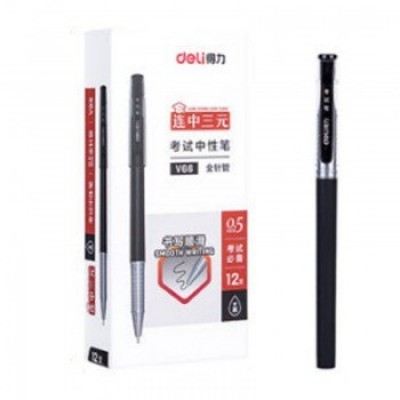 得力(deli)V66 考试中性笔 0.5mm子弹头 黑色 全针管 子弹头 12支/盒