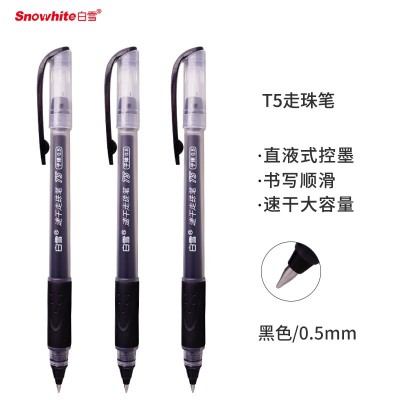 白雪(snowhite)T5速干中性笔学生考试笔商务办公签字笔水笔黑色0.5mm12支/盒