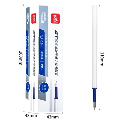 得力(deli)可擦按动中性笔芯 0.5mm子弹头签字笔水笔替芯 晶蓝 20支/盒GT164