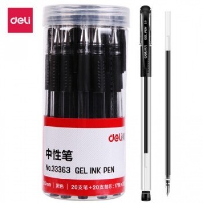 得力(deli)0.5mm中性笔水笔签字笔套装(20支笔黑+20支替芯混)33363