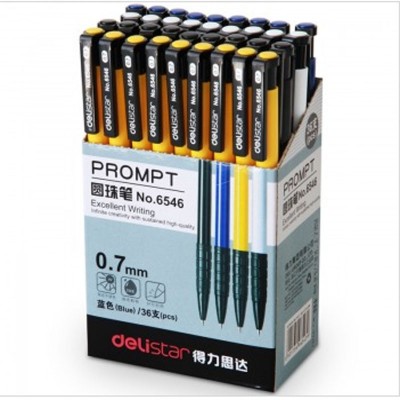 得力(deli)6546-0.7mm 经典防滑握手设计圆珠笔 笔芯蓝色 36支/盒