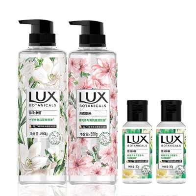 力士(LUX)植萃精油香氛沐浴露套装小苍兰550g+樱花550g赠50gx2持久留香茶树