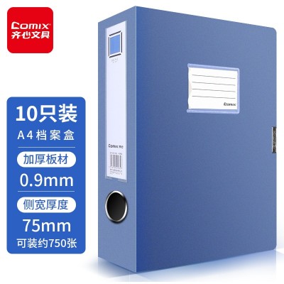 首页 > 办公用品 > 文具 > 齐心(Comix) 10个装 75mm牢固耐用粘扣档案盒/A4文件盒/资料盒 蓝色EA1009-10