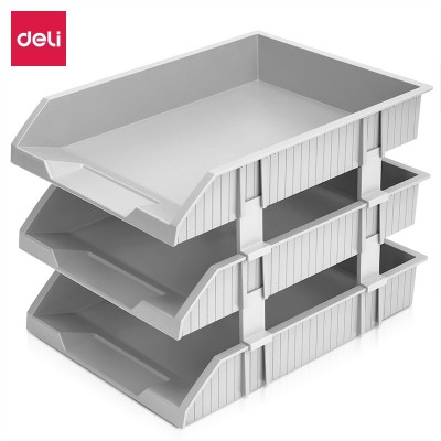 得力(deli)三层可调节收纳文件座 自由拆卸组装文件盘/框 浅灰色 9206